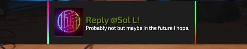 Reply @Sol L! Probably not but maybe in the future I hope.