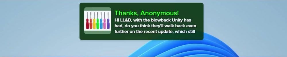Thanks, Anonymous! Going back to the new Unity pay system...since Nintendo has a couple games using Unity, do you think they'll end up reversing course due to lawyers and public opinion