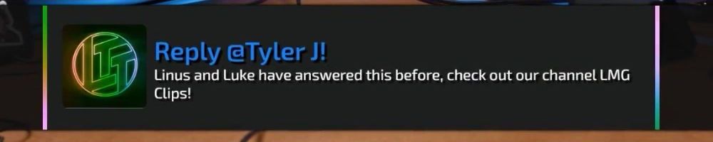 Reply @Tyler J! Linus and Luke have answered this before, check out our channel LMG Clips!