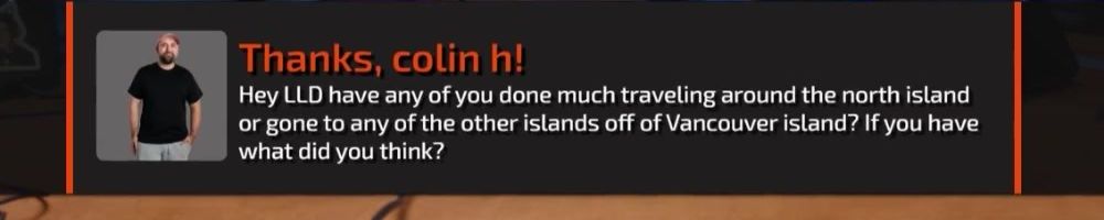 Thanks, colin h! Hey LLD have any of you done much traveling around the north island or gone to any of the other islands off of Vancouver island? If you have what did you think? I me gl