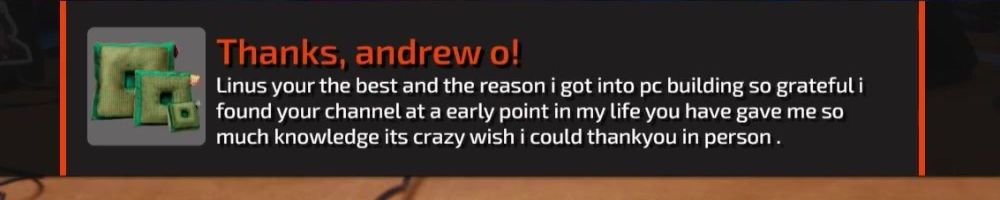 Thanks, andrew o! Linus your the best and the reason i got into pc building so grateful i found your channel at a early point in my life you have gave me so much knowledge its crazy wish i could thankyou in person .