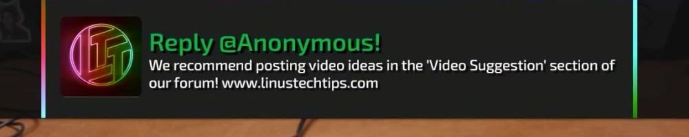 Reply @Anonymous! We recommend posting video ideas in the 'Video Suggestion' section of our forum! www.linustechtips.com