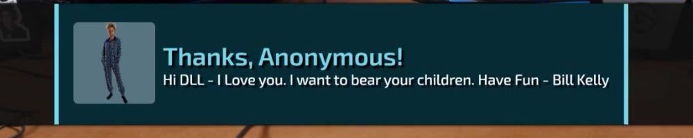 Thanks, Anonymous! Hi DLL - I Love you. I want to bear your children. Have Fun - Bill Kelly