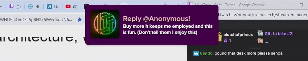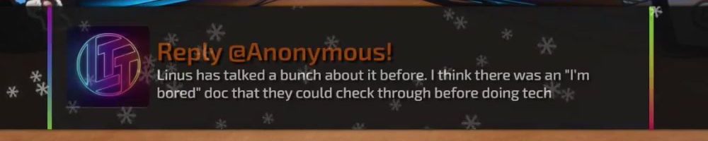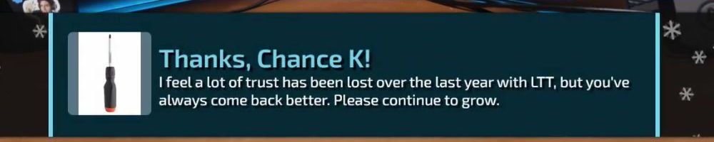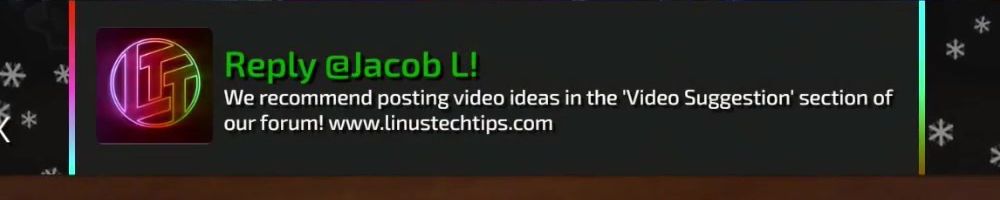 Been recently a fan of the channel over the last year just really enjoyed the family you guys have built at ltt hope the best. One day I hope to make a name in my town probably not the world like you.