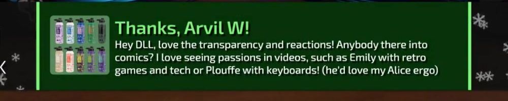 Hey DLL, love the transparency and reactions! Anybody there into comics? I love seeing passions in videos, such as Emily with retro games and tech or Plouffe with keyboards! (he'd love my Alice ergo)