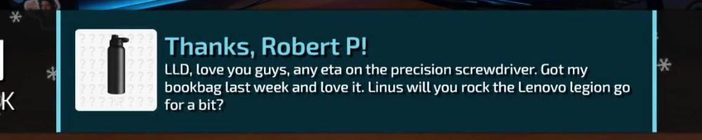 LLD, love you guys, any eta on the precision screwdriver. Got my bookbag last week and love it. Linus will you rock the Lenovo legion go for a bit?