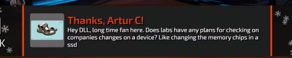 Hey DLL, long time fan here. Does labs have any plans for checking on companies changes on a device? Like changing the memory chips in a ssd