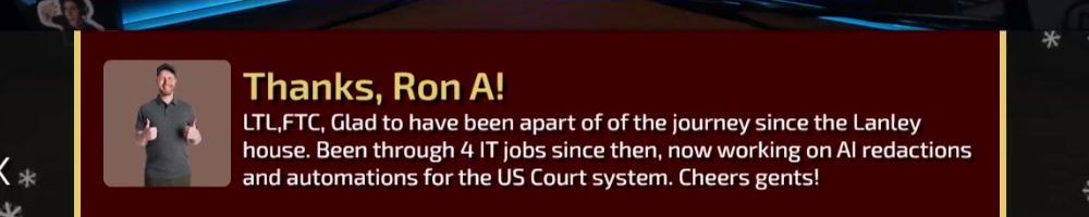 LTL,FTC, Glad to have been apart of the journey since the Lanley house. Been through 4 IT jobs since then, now working on AI redactions and automations for the US Court system. Cheers gents!