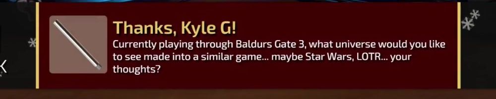 Currently playing through Baldurs Gate 3, what universe would you like to see made into a similar game... maybe Star Wars, LOTR... your thoughts?