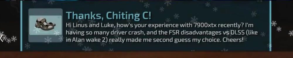 Hi Linus and Luke, how's your experience with 7900xtx recently? I'm having so many driver crash, and the FSR disadvantages vs DLSS (like in Alan wake 2) really made me second guess my choice. Cheers!