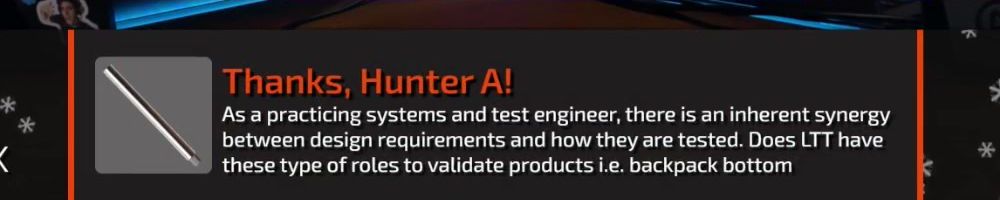 As a practicing systems and test engineer, there is an inherent synergy between design requirements and how they are tested. Does LTT have these type of roles to validate products i.e. backpack bottom