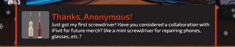 Just got my first screwdriver! Have you considered a collaboration with iFixit for future merch? like a mini screwdriver for repairing phones, glasses, etc.?
