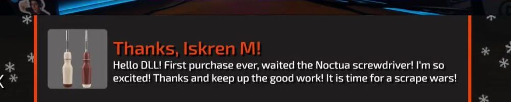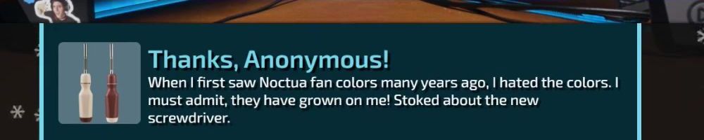 Hello DLL! First purchase ever, waited the Noctua screwdriver! I'm so excited! Thanks and keep up the good work! It is time for a scrape wars!