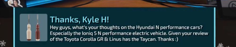 of the Toyota Corolla GR & Linus has the Taycan. Thanks :)