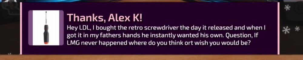 Hey LDL, I bought the retro screwdriver the day it released and when I got it in my fathers hands he instantly wanted his own. Question, If LMG never happened where do you think or wish you would be?