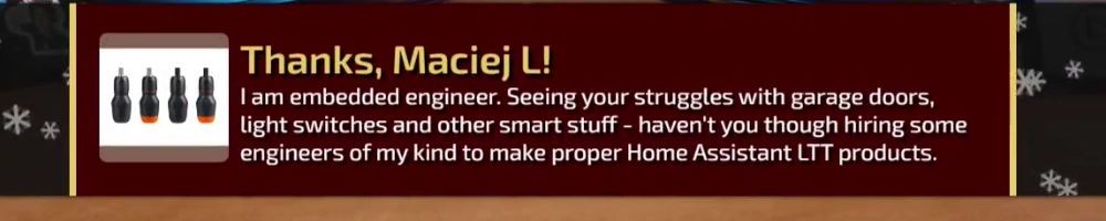 I am embedded engineer. Seeing your struggles with garage doors, light switches and other smart stuff - haven't you thought hiring some engineers of my kind to make proper Home Assistant LTT products.
