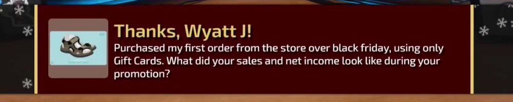 Gift Cards. What did your sales and net income look like during your