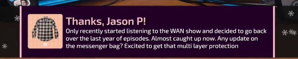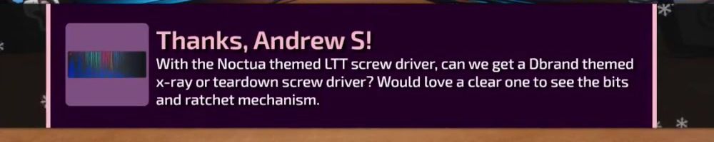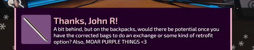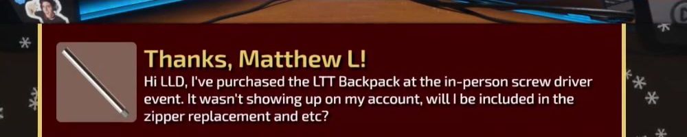 Hey LLD! Long-time listener, 1st-time floatplane, live show & merch message! Buying the BackPack and Screwdriver as my Christmas gift. What is something you are most excited to see come from the lab?