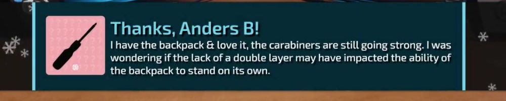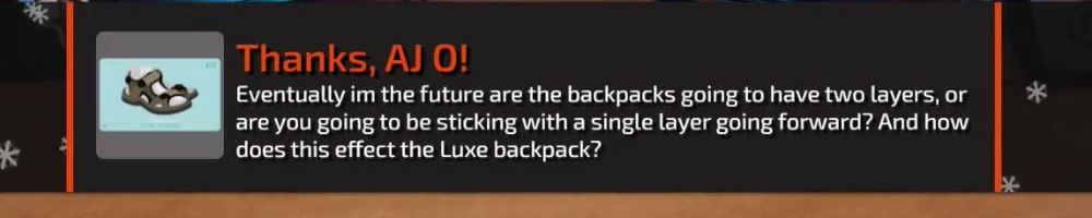 Eventually in the future are the backpacks going to have two layers, or are you going to be sticking with a single layer going forward? And how does this effect the Luxe backpack?
