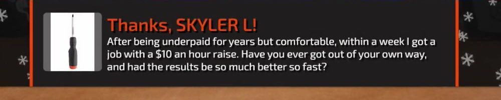 After being underpaid for years but comfortable, within a week I got a job with a $10 an hour raise. Have you ever got out of your own way, and had the results be so much better so fast?