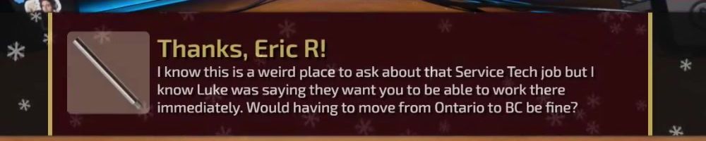 I know this is a weird place to ask about that Service Tech job but I know Luke was saying they want you to be able to work there immediately. Would having to move from Ontario to BC be fine?