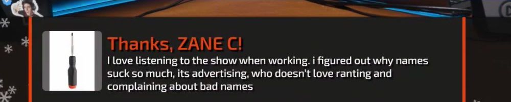 I love listening to the show when working. i figured out why names suck so much, its advertising, who doesn't love ranting and complaining about bad names