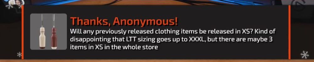Will any previously released clothing items be released in XS? Kind of disappointing that LTT sizing goes up to XXXL, but there are maybe 3 items in XS in the whole store
