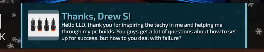 Hello LLD, thank you for inspiring the techy in me and helping me through my pc builds. You guys get a lot of questions about how to set up for success, but how to you deal with failure?