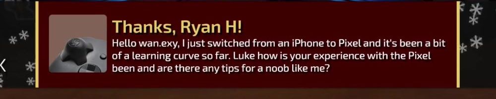 Hello wan.exy, I just switched from an iPhone to Pixel and it's been a bit of a learning curve so far. Luke how is your experience with the Pixel been and are there any tips for a noob like me?