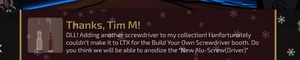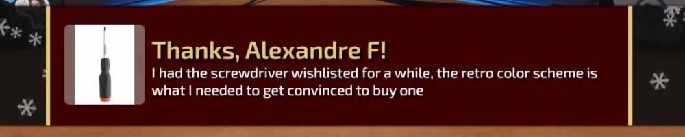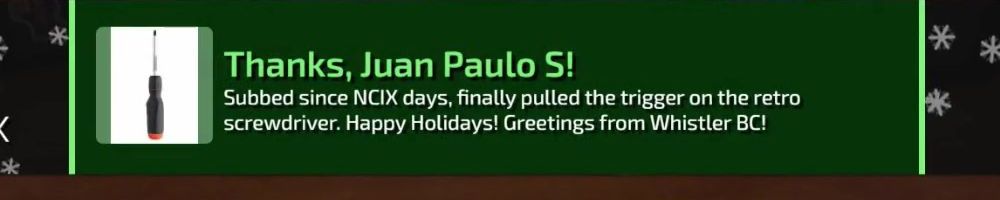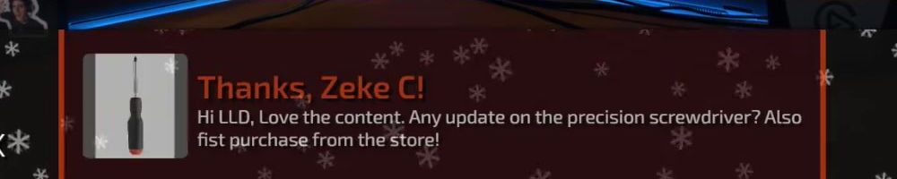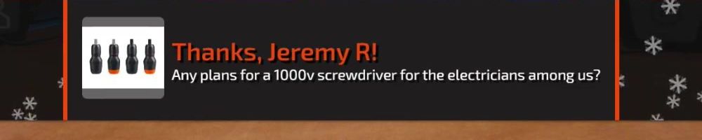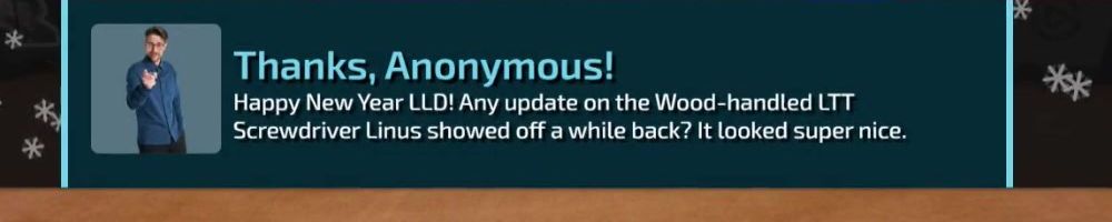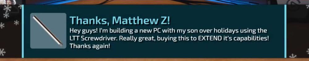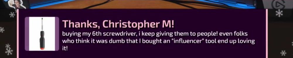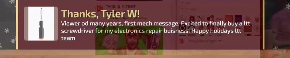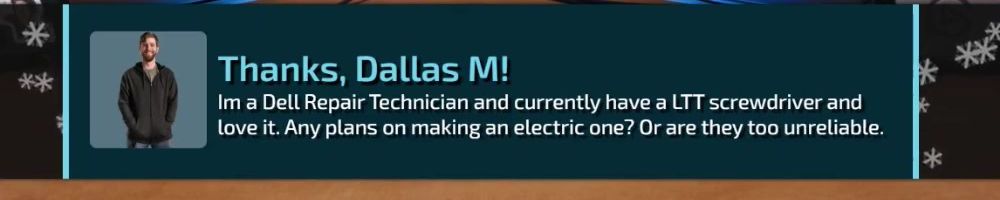 Viewer od many years, first mech message. Excited to finally buy a ltt screwdriver for my electronics repair buisness! Happy holidays ltt team