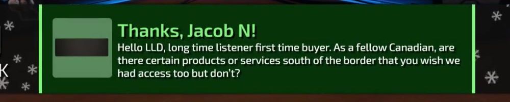 Hello LLD, long time listener first time buyer. As a fellow Canadian, are there certain products or services south of the border that you wish we had access too but don't?