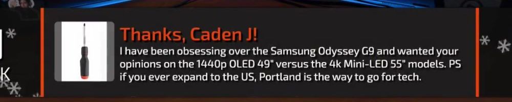 I have been obsessing over the Samsung Odyssey G9 and wanted your opinions on the 1440p OLED 49" versus the 4k Mini-LED 55" models. PS if you ever expand to the US, Portland is the way to go for tech.