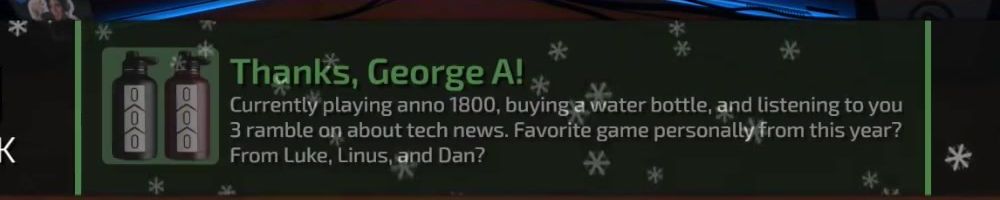 Hint: Use CTRL + F to search messages in this show, or use Whenplane's WAN Show Search tool to search for messages in all shows.