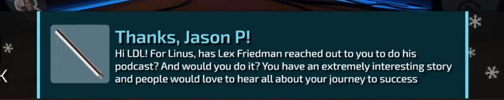 Hi LDL! For Linus, has Lex Friedman reached out to you to do his podcast? And would you do it? You have an extremely interesting story and people would love to hear all about your journey to success