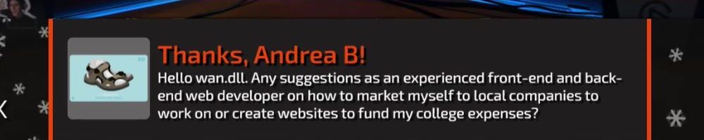 Hello wan.dll. Any suggestions as an experienced front-end and back-end web developer on how to market myself to local companies to work on or create websites to fund my college expenses?