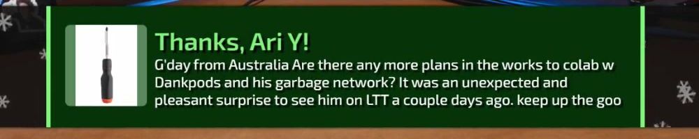 G'day from Australia Are there any more plans in the works to colab w Dankpods and his garbage network? It was an unexpected and pleasant surprise to see him on LTT a couple days ago. keep up the goo