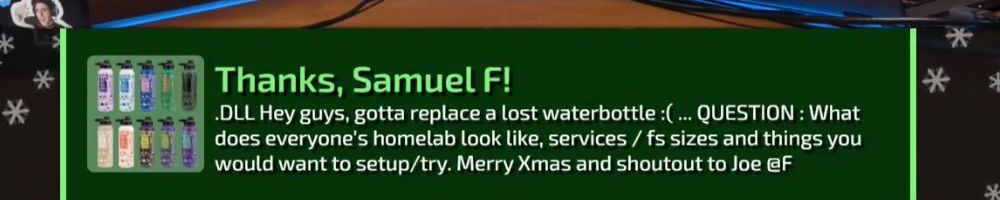 .DLL Hey guys, gotta replace a lost waterbottle :( ... QUESTION : What does everyone's homelab look like, services / fs sizes and things you would want to setup/try. Merry Xmas and shoutout to Joe @F