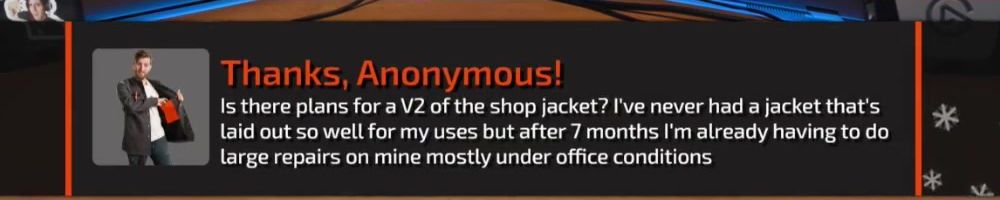 Is there plans for a V2 of the shop jacket? I've never had a jacket that's laid out so well for my uses but after 7 months I'm already having to do large repairs on mine mostly under office conditions