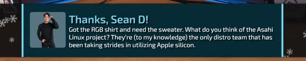 Got the RGB shirt and need the sweater. What do you think of the Asahi Linux project? They're (to my knowledge) the only distro team that has been taking strides in utilizing Apple silicon.