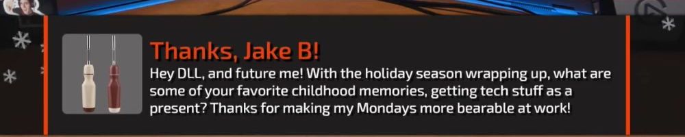 Hey DLL, and future me! With the holiday season wrapping up, what are some of your favorite childhood memories, getting tech stuff as a present? Thanks for making my Mondays more bearable at work!