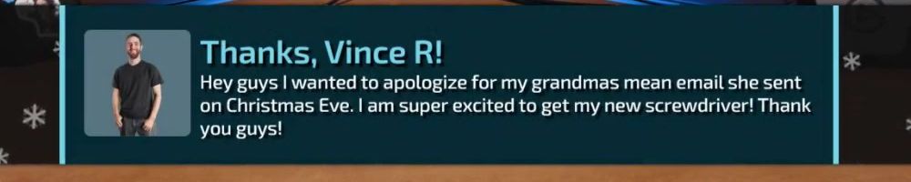 Hey guys I wanted to apologize for my grandmas mean email she sent on Christmas Eve. I am super excited to get my new screwdriver! Thank you guys!