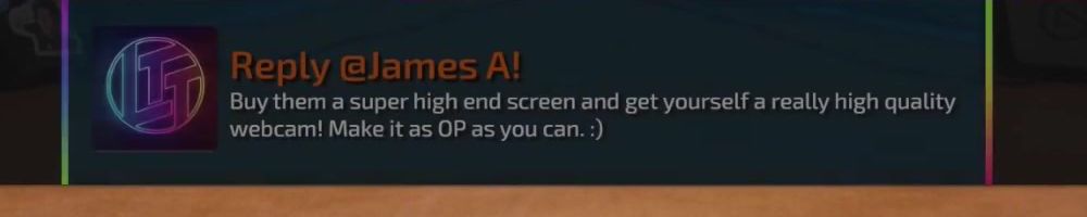 Reply @James A! Buy them a super high end screen and get yourself a really high quality webcam! Make it as OP as you can. :)