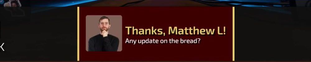 Thanks, Matthew L! Any update on the bread?