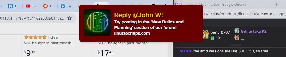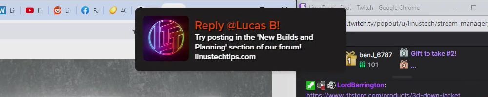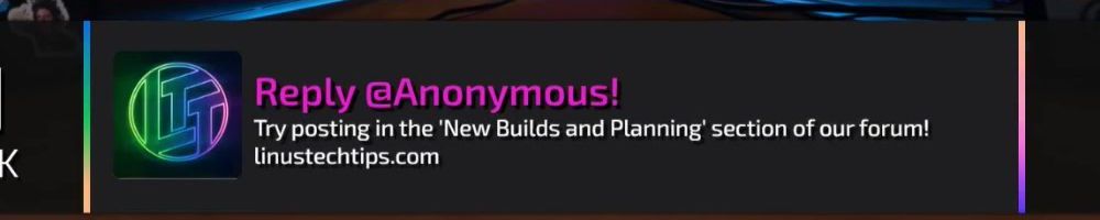 Reply @Anonymous! Try posting in the ‘New Builds and Planning’ section of our forum! linustechtips.com