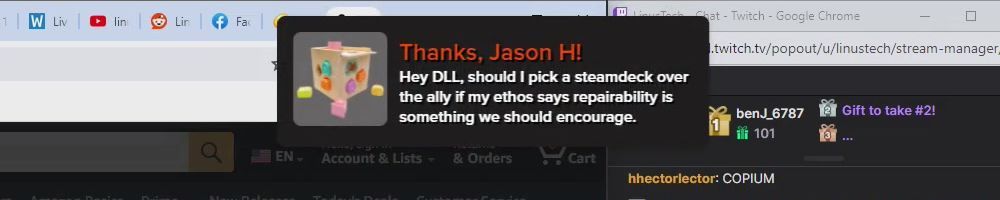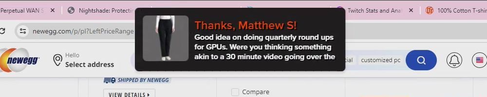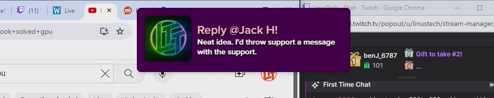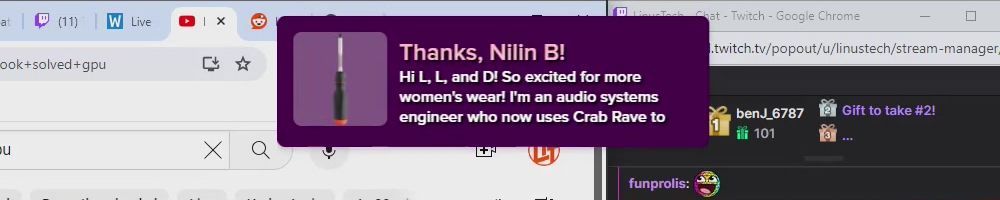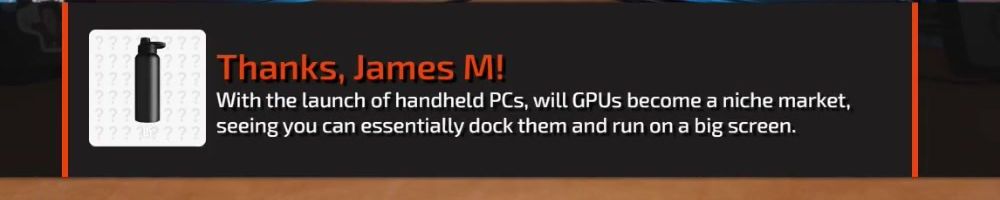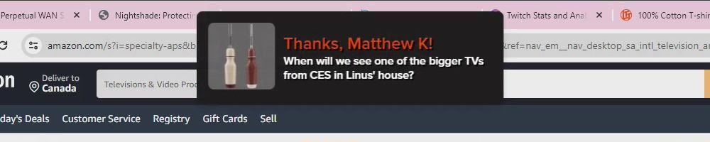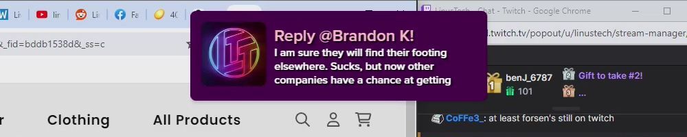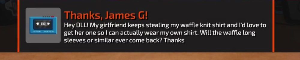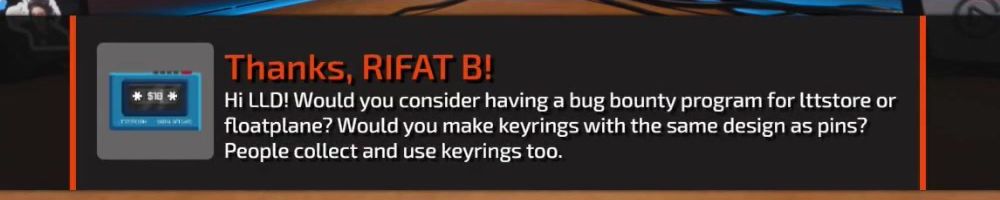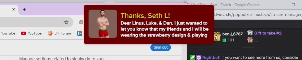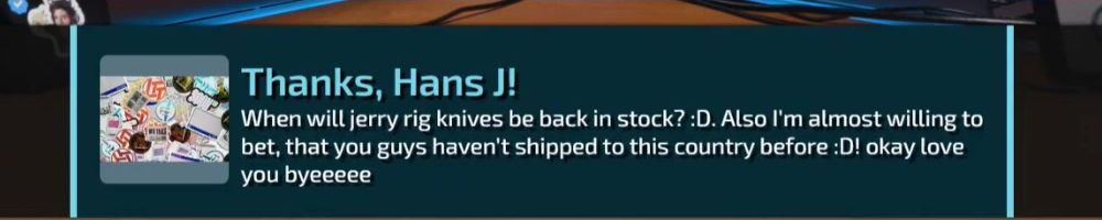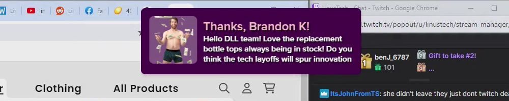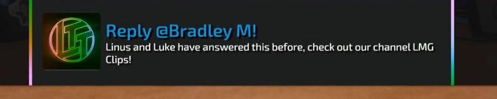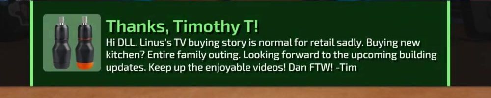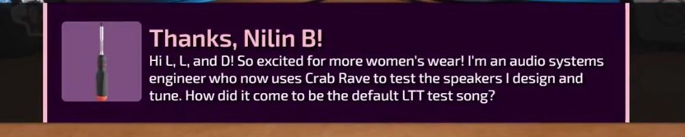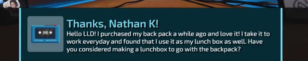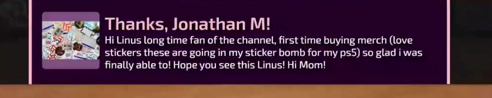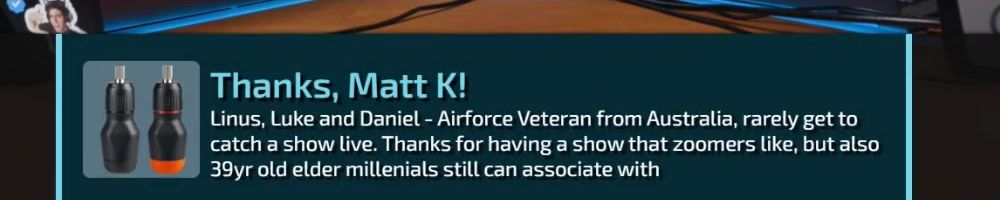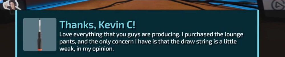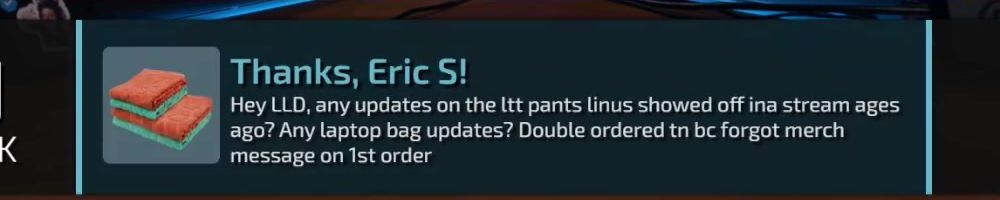 Thanks, Eric S! Hey LLD, any updates on the ltt pants linus showed off ina stream ages ago? Any laptop bag updates? Double ordered tn bc forgot merch message on Ist order