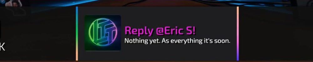 Reply @Eric S! Nothing yet. As everything it's soon.