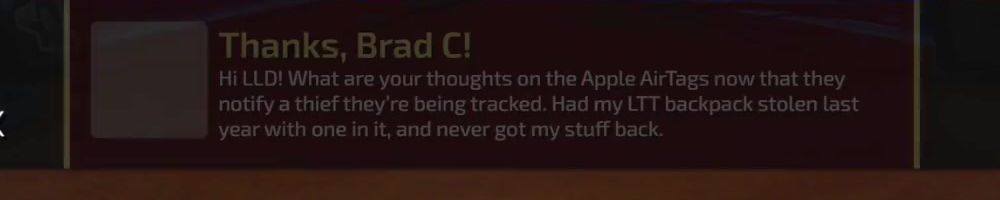 Thanks, Brad C! Hi LLD! What are your thoughts on the Apple AirTags now that they notify a thief they're being tracked. Had my LTT backpack stolen last year with one in it, and never got my stuff back.