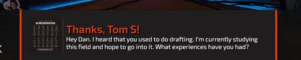 Thanks, Tom S! Hey Dan. I heard that you used to do drafting. I'm currently studying this field and hope to go into it. What experiences have you had?