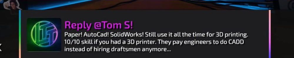 Reply @Tom S! Paper! AutoCad! SolidWorks! Still use it all the time for 3D printing. 10/10 skill if you had a 3D printer. They pay engineers to do CADD instead of hiring draftsmen anymore...