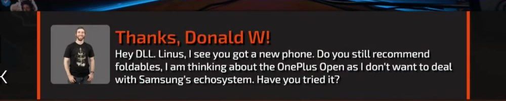 Thanks, Donald W! Hey DLL. Linus, I see you got a new phone. Do you still recommend foldables, I am thinking about the OnePlus Open as I don't want to deal with Samsung's ecosystem. Have you tried it?